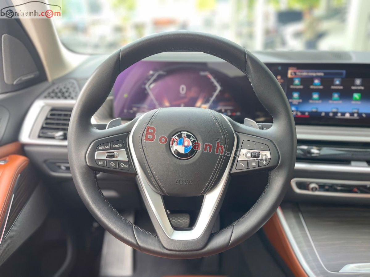 BMW X5 xDrive40i xline sản xuất 2023 đăng kí 2024 một chủ mua mới 7 chỗ ngồi .Xe sử dụng động cơ xăng I6 3.0L TwinPower Turbo mild-hybrid 48V, công suất 381 mã lực, mô-men xoắn 520 Nm, đi kèm hộp số tự động 8 cấp Steptronic và hệ dẫn động bốn bánh toàn thời gian xDriv. Ngoại thất nổi bật với lưới tản nhiệt quả thận cỡ lớn, đèn LED thích ứng, mâm hợp kim 20 inch thể thao .Nội thất cao cấp với 3 hàng ghế rộng rãi, hàng ghế thứ ba gập điện linh hoạt, ghế da chỉnh điện đa hướng, nhớ ghế, sưởi/làm mát, màn hình cong BMW Curved Display, hệ điều hành iDrive mới nhất, âm thanh Harman Kardon 16 loa, điều hòa tự động đa vùng, cửa sổ trời toàn cảnh, cốp điện và đèn viền nội thất sang trọng. Xe được trang bị hệ thống treo khí nén thích ứng nâng – hạ gầm, giúp tối ưu độ êm ái khi di chuyển trong đô thị, ổn định ở tốc độ cao và linh hoạt hơn trên đường xấu. Về an toàn, BMW X5 xDrive40i sở hữu đầy đủ ABS, EBD, BA, DSC, kiểm soát lực kéo, hỗ trợ khởi hành ngang dốc, cảnh báo điểm mù, hỗ trợ giữ làn, cruise control thích ứng, camera 360, cảm biến trước sau và 8 túi khí, HUD kín.