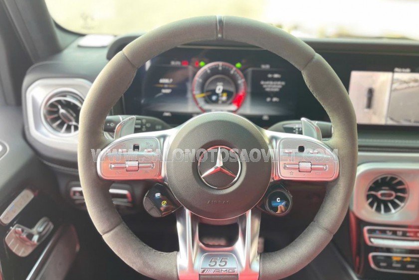 Mercedes AMG G63 Edition 55 sản xuất 2022 đăng kí 2023 nhập Áo một chủ mua mới .Xe trang bị động cơ V8 twin-turbo, dung tích 4.0 lít, đem đến cho công suất tối đa 577 mã lực hộp số tự động 9 cấp, hệ dẫn động 4 bánh toàn thời gian có thể tăng tốc 0-96 km/h trong 4,5 giây .Ngoại thất của Mercedes-AMG G63 Edition 55 (2022) là sự kết hợp hoàn hảo giữa vẻ hầm hố nguyên bản và những chi tiết cá nhân hóa độc quyền. Xe gây ấn tượng màu sơn đặc biệt là Đen Obsidian đi kèm bộ tem AMG hình thoi đặc trưng chạy dọc thân xe giúp nhận diện phiên bản kỷ niệm ngay lập tức. Điểm nhấn sang trọng nằm ở bộ mâm đúc 22 inch đa chấu màu xám Tantalum mờ. Khoang nội thất của Mercedes-AMG G63 Edition 55 là sự giao thoa giữa nghệ thuật thủ công và công nghệ đỉnh cao, nổi bật với tông màu đỏ - đen tương phản mạnh mẽ. Điểm nhấn công nghệ đáng chú ý nhất là hệ thống âm thanh vòm Burmester 15 loa, công suất 590 Watt, cặp màn hình kép 12.3 inch sắc nét, tích hợp hệ thống giải trí COMAND Online và hỗ trợ kết nối smartphone toàn diện. Xe được trang bị ghế AMG Performance chỉnh điện đa hướng, tích hợp đầy đủ các tính năng sưởi, làm mát và massage chuyên sâu. Đặc biệt an toàn kiểm soát hành trình thích ứng, hỗ trợ giữ làn và cảnh báo điểm mù,vô-lăng bọc sợi Dinamica có logo "55 AMG ", bậc cửa phát sáng đỏ và đèn viền nội thất 64 màu tùy chỉnh.
